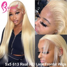 613 Real HD Lace Closure Wigs 5x5 Brazilian Blonde Straight Human Hair