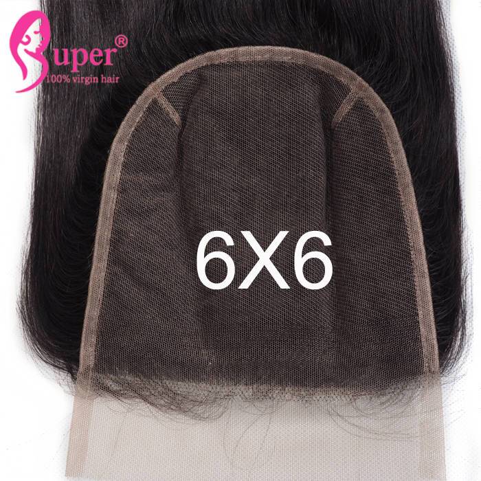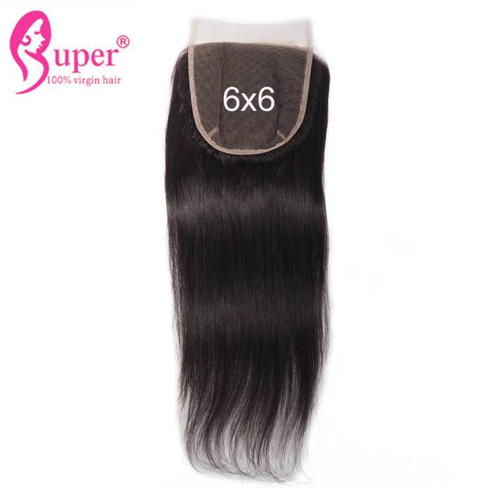Home >Lace Closure 6x6 >6x6 Top Lace Closure Free Part With Baby Hair Brazilian Straight Virgin Hair Natural Black #1b
