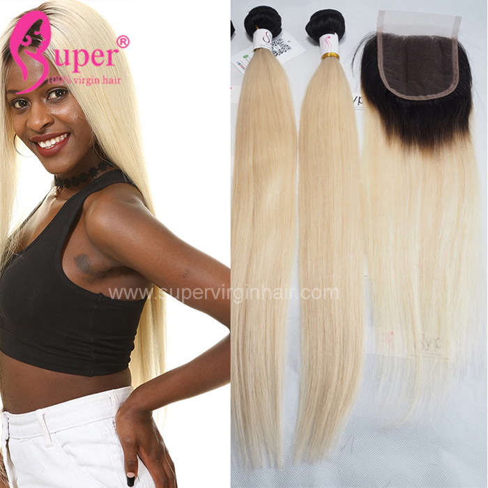 Home >Lace Closure 4x4 >Blond Hair Ombre Ideas 1b 613 Straight Virgin Human Hair Lace Closure