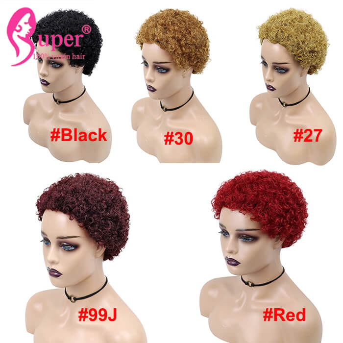 Hair Grade: Premium Grade Human HairPixie Cut Wig Afro Kinky Curly