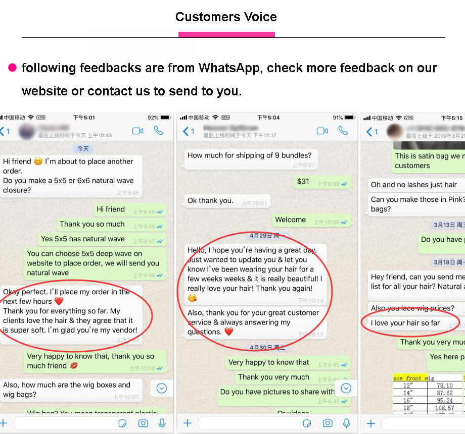 service 5 high quality hairs for long term business and good credit to bring returning customers and more and more new customers.