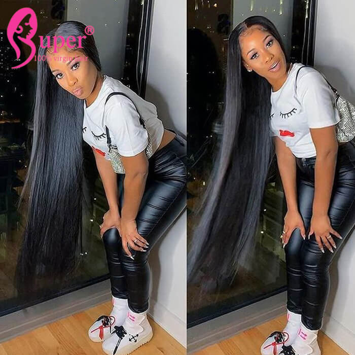 38 40 Inch HD Lace Frontal Wigs Best Long Straight Human Hair Closure Wig For Bl...