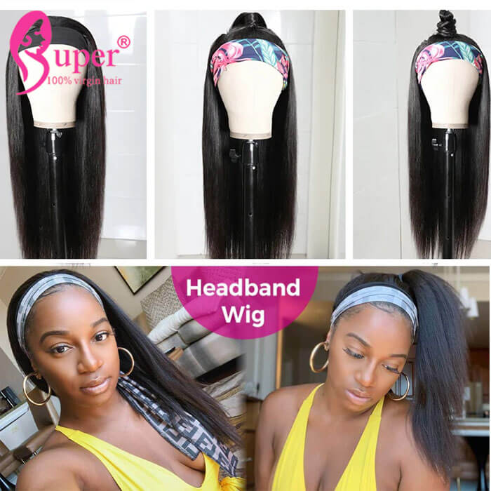 Hair Grade: Premium 100 human hair headband wigs