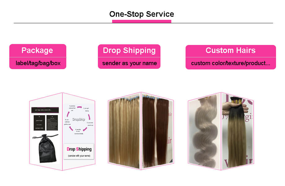 service 2 professional packaging with your own logo and name, including hair label, bag, box, business card etc.